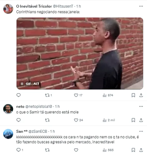 Apesar de serem bons nomes, o torcedor corintiano não acredita que um dos dois jogadores possam vir para o clube na próxima temporada. Ainda mais com as informações dos últimos dias de que o Corinthians tem contas atrasadas com alguns jogadores.