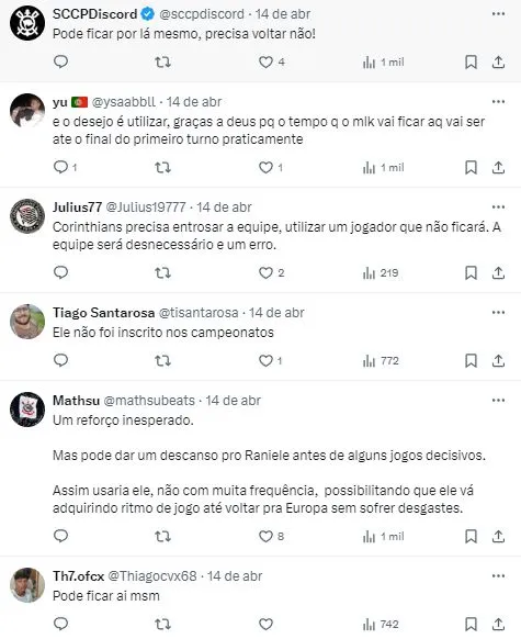 Entretanto, um novo cenário no extracampo Alvinegro pode gerar um reforço imediato ao Timão. Breve, porém, com potencial de ajudar a equipe treinada por António Oliveira em algumas rodadas do Brasileirão e até mesmo na Copa Sul-Americana.