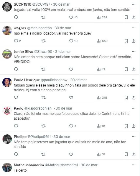 Vale lembrar que a lista para a competição continental tem vaga para 50 nomes, e a ausência de Moscardo preocupa, pois aponta o ‘vácuo’ que o meio-campista está no Clube e transforma sua condição em mistério. Até o momento, o Clube tem 26 inscritos na Sula. A informação é do portal Meu Timão.