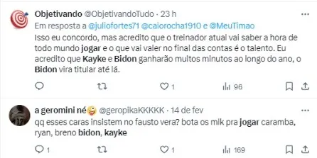 Vale lembrar que Breno Bidon, que ainda não recebeu chances desde que passou a ser opção no profissional, tem contrato com o clube até 31 de janeiro de 2025 e já chegou a receber sondagens de equipes estrangeiras.