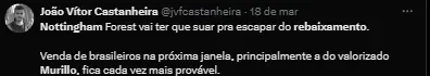 Porém, se individualmente o jovem vem desempenhando um futebol de alto nível e jogando bem, o mesmo não acontece com sua equipe. O Nottingham está brigando contra o rebaixamento.