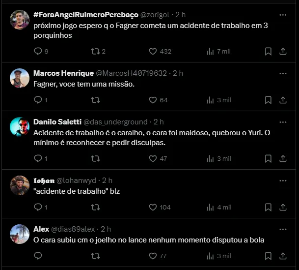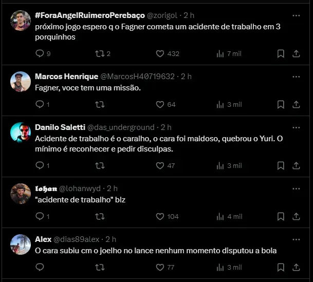 Nas redes sociais, boa parte da Fiel torcida pediu um cartão vermelho ao zagueiro, fato que não aconteceu. Um mês após o lance, o atleta do Palmeiras falou, pela 1ª vez, do assunto: