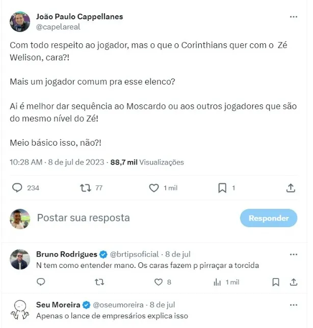 Zé Welison seria boa pro Timão? Fiel responde