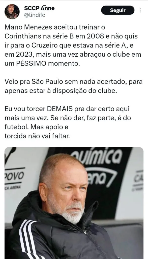 O jornalista ainda destacou a falta de iniciativa do Corinthians. “Não gosto muito de atribuir culpas, mas que no time do Corinthians dá para a gente identificar uma falta de poder de iniciativa, isso é uma coisa evidente. Tem elenco pior que o Corinthians, que joga com coragem. Me parece que no caso do Corinthians há um excesso de acomodação”, finalizou o comunicador.