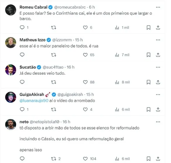 Nos vídeos em questão, Cássio foi visto fazendo sinal com a mão de abre e fecha, como se fosse um ‘fala com a minha mão’ após os protestos vindos da arquibancada norte onde ficam as torcidas organizadas do Corinthians.