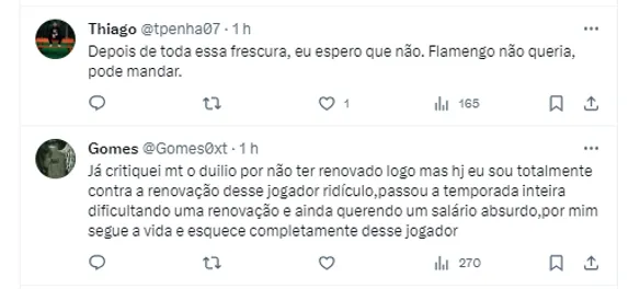 Os motivos seriam os altos valores do jogador, além disso, a parte técnica do atleta, que muitas vezes sendo preterido por Caetano na falta de Gil ou Lucas Veríssimo.