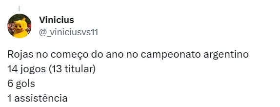 No entanto, Rojas não vem atendendo as expectativas da Fiel e não acumula bons números desde que desembarcou em Itaquera. Até o momento, são 18 jogos (11 como titular) e nenhum gol marcado.