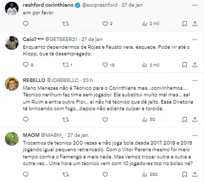 O ídolo ainda ressaltou que o comandante não consegue fazer o time funcionar e esse começo de temporada no Paulistão é bem preocupante. A cobrança foi pelo fato de que o profissional não consegue deixar a equipe organizada dentro de campo.