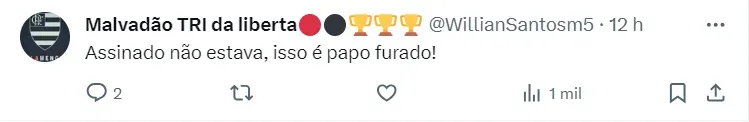 O ex-jogador criticou a forma como o atleta conduziu a negociação. “Eu, como corintiano e comentarista, mais como comentarista, (digo): meu irmão, está tudo bem. Você escolhe o seu caminho. Mas tenho certeza de que você jamais pisará ou vestirá a camisa do Corinthians. Enquanto eu tiver vivo, acho que isso não vai acontecer. Porque o que você fez com o Corinthians foi coisa de moleque”.