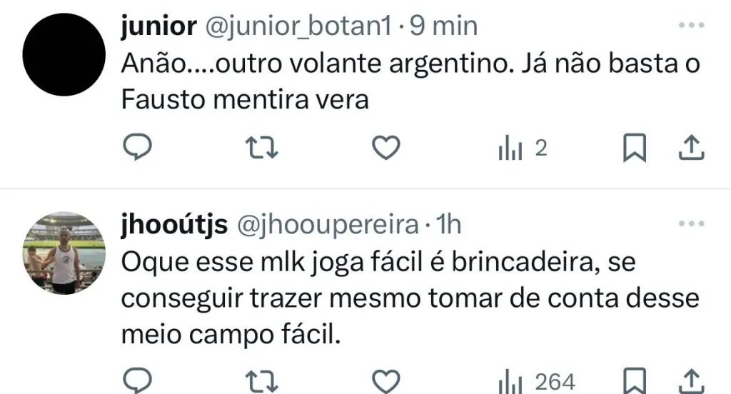 “Oque esse menino joga fácil é brincadeira, se conseguir trazer mesmo ele vai tomar conta desse meio-campo fácil demais”, disse um fanático torcedor do Corinthians nas redes sociais.