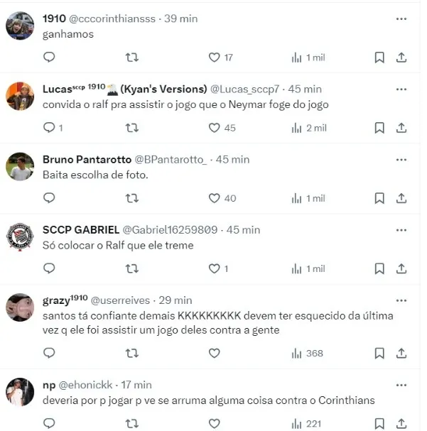 O astro da seleção brasileira confirmou presença e vai acompanhar a partida no camarote do presidente Marcelo Teixeira. Em outras oportunidades, o jogador chegou a ir na Neo Química Arena e vestiu as cores alvinegras.