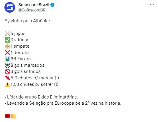 Sylvinho saiu do Corinthians e assinou com a Albânia para sonhar em levar o país à Copa do Mundo. O comandante está surpreendendo no comando técnico do time albanese e tem aproveitamento que nunca conseguiu ter no Alvinegro Paulista. As estatísticas vieram à tona nas redes sociais e pegaram grande parte da torcida de surpresa, principalmente pelos dados.