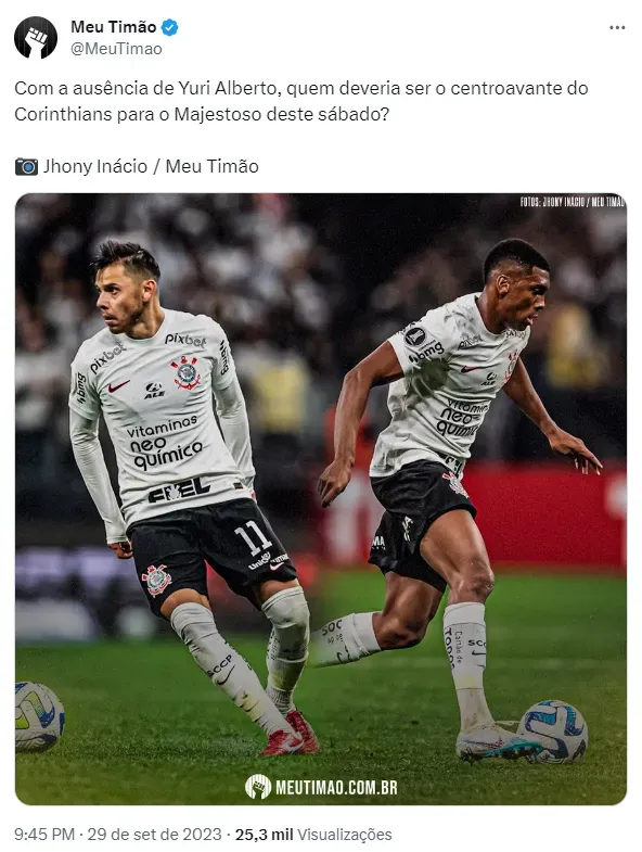 Agora, na gestão de Mano Menezes, Felipe Augusto volta a almejar uma oportunidade na equipe. Fora dos gramados desde o dia 19 de agosto, no empate entre Corinthians e Cruzeiro pelo Brasileirão, a última partida em que o atleta esteve relacionado foi no dia 14 de setembro, na derrota do Timão para o Fortaleza. Por isso, a ausência de Yuri Alberto no clássico contra o São Paulo é a oportunidade perfeita para mostrar serviço e agarrar a oportunidade.