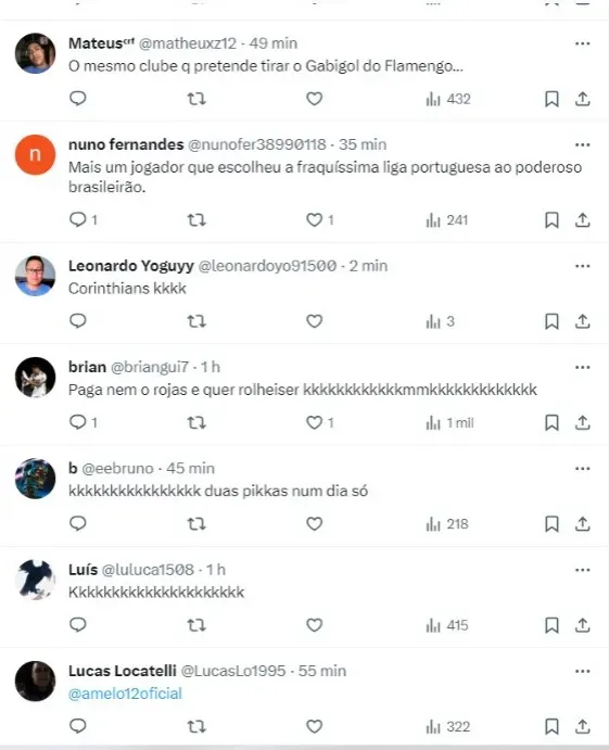 “Há uma proposta do Corinthians, mas estamos fechando com o Benfica” – disse o agente do atleta, em contato telefônico com a reportagem do Globo Esporte. O agente ainda completou dizendo que tem ‘muito respeito’ pelo Timão.