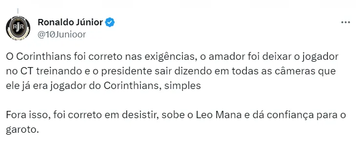 Nesta terça-feira, o Corinthians desistiu oficialmente de contratar o atleta. Em nota oficial divulgada pelo clube, foi explicado os três principais motivos pelo não prosseguimento nas negociações.