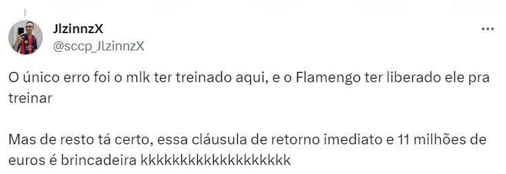 O lateral-direito foi liberado pelo Flamengo e participava das atividades com o restante do grupo comandado por Mano Menezes, mas nos bastidores havia alguns pontos a serem resolvidos antes do anúncio oficial.