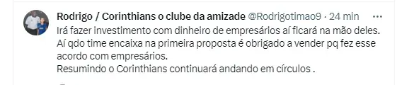 Há um consenso entre os torcedores que o time precisa passar por uma reformulação. O lateral-esquerdo Fábio Santos já comunicou que irá se aposentar no final do ano, mas nomes como o lateral-direito Fagner e o zagueiro Gil, tem sua presença em risco para 2024 também. O entendimento é que se a equipe quiser brigar por coisas grandes no ano que vem, vai precisar reforçar seu elenco.