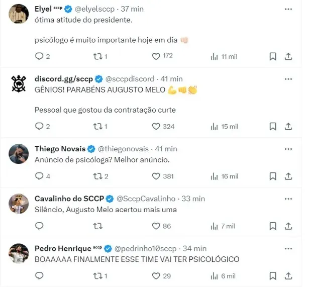 A repercussão nos comentários dos torcedores do Corinthians foi muito positiva com a contratação da experiente profissional que fez sucesso no rival. A troca não foi bem quista pelos tricolores.