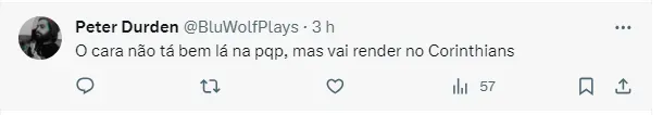 No entanto, a Fiel parece não estar muito contente a respeito de uma eventual chegada do jogador. Pelo Twitter, houve quem lembrou que ele não é titular de sua atual equipe: “31 anos, reserva do Panathinaikos (da Grécia) que fique apenas nas sondagens mesmo. Jogador mediano”, disse um torcedor.