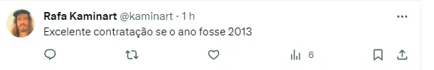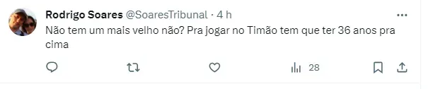 Ainda houve quem criticasse a diretoria por sempre focar em jogadores com a idade mais avançada: “A desgraça desse time só sabe contratar velho em fim de carreira”, complementou outro usuário da rede social.