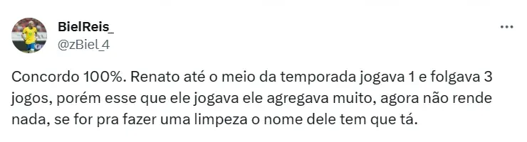 A Fiel aponta a idade de Renato, que está com 35 anos, e a condição física do jogador como grande motivos para um ‘adeus’ do camisa 8. Neste ano, o atleta pouco atuou por ter tido diversas lesões.