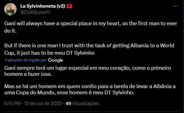 “Obrigado Honorável Sylvinho”, “Gianni provavelmente tinha um time pior e um grupo mais difícil. Mas definitivamente estamos jogando um futebol melhor com Sylvinho”, “Sylvinho qualificará a Albânia para o Euro… Para ele, um belo começo de trabalho!” e “Se há um homem em quem confio para a tarefa de levar a Albânia a uma Copa do Mundo, esse homem é meu DT Sylvinho”, foram alguns dos comentários.