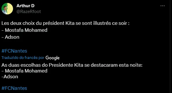 “As duas escolhas do Presidente Kita se destacaram esta noite: Mostafa Mohamed e Adson”;