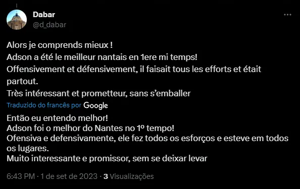 A atuação do atacante, que foi titular da equipe comandada por Pierre Aristouy, chamou atenção dos torcedores do Nantes, que teceram comentários positivos a respeito de Adson, elogiando bastante o estilo de jogo do agora camisa 20. Houve mesmo até elogios ao presidente do clube francês pela contratação.
