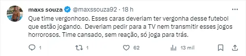 “É importante entender o momento de cada um. O futebol é isso, você precisa competir. Quando você não consegue ser superior tecnicamente, você precisa competir. Não fizemos nada disso hoje”, analisou o treinador.