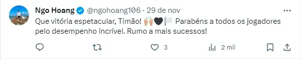 Inclusive, o Timão já está se planejando para 2024 que terá Augusto Melo como seu novo presidente. O Craque Neto trouxe a informação que Marcelo Djian, Campeão Brasileiro de 1990, será o diretor executivo a partir do ano que vem.