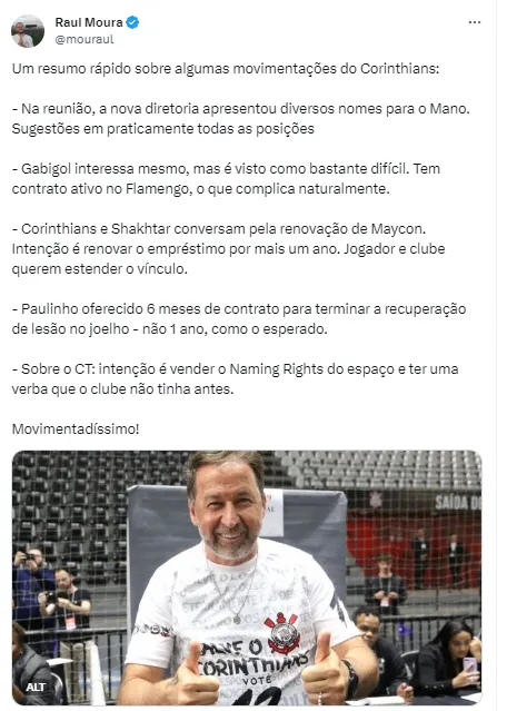 É importante deixar claro que informações dão conta de que a renovação de Gabriel Barbosa, que tem contrato com o Flamengo, até o fim de 2024, estaria encaminhada com o time carioca, mas a nova gestão do Timão quer ser ousada e buscar grandes nomes.