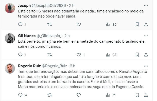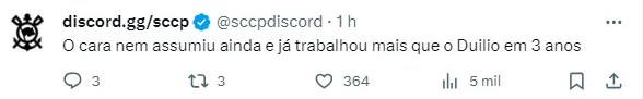O Corinthians tende a ir com tudo no mercado após Augusto Melo ser eleito novo presidente. Isso porque já foi anunciado que muitos jogadores estão deixando a equipe. Entre eles estão: Renato Augusto, Giuliano, Gil e Cantillo. A faxina segue acontecendo em Itaquera.