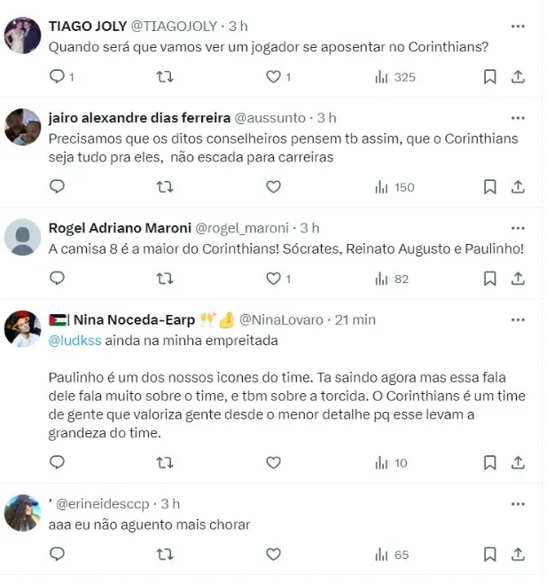 “Ainda não tenho nada em mente, vou deixar isso para resolver na semana que vem. Ao torcedor, meu muito obrigado pela festa que fizeram. Talvez eu não tenha a noção do que represento para essa torcida, e às vezes fico pensando se mereço tudo isso. Mas acho que sim. É a gratidão, desejar boa sorte para eles e dizer que sempre vou torcer pelo Corinthians“, finalizou.