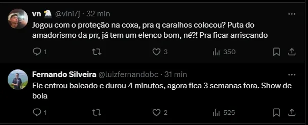 A reação da torcida após a confirmação da lesão