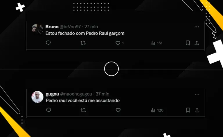 “Eu estou fechado com o Pedro Raul garçom“. “Ele virou o atacante mais completo do mundo, sensacional“, comentou um torcedor corintiano. “O cara está praticando o futebol nesta noite“.