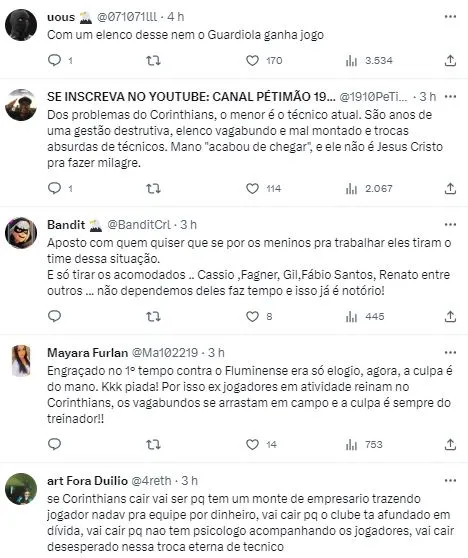 “Martelou quem, rapaz, pelo amor de Deus? Estádio lotado, todo mundo ali, ‘ah, não, o time tem que sair mais aberto, o outro tem que sair mais fechado’, e não ganha. Não ganha nem com mais aberto, nem com mais fechado. Não anda”, afirmou Vampeta, escancarando a falta de avanço do Alvinegro, que sob o comando de Mano Menezes, teve três empates, duas derrotas e segue no jejum de vitórias desde 22 de setembro, quando Luxa era o treinador do Timão.