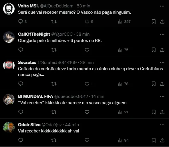 Quem gostou dessa negociação foi o próprio Corinthians, que receberá 20% do valor total da venda. Como o Vasco gastou R$ 26,6 milhões pela contratação de Adson, o Timão vai ter um Pix de R$ 5.320.000,00, de acordo com o GE.