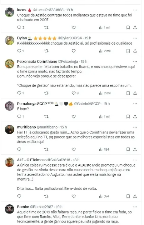 Importante salientar que existe outro cargo fora dos gramados que vem sendo tratado com prioridade no Parque São Jorge: novo diretor executivo de futebol, mas algumas negativas já foram ouvidas.