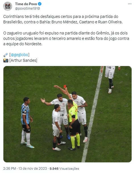 O Corinthians venceu o Grêmio neste último domingo (12) em um jogo repleto de polêmicas para a arbitragem. Mesmo com a vitória do Timão, o árbitro José Rodrigo Pereira de Lima se destacou negativamente pela expulsão de Bruno Méndez.