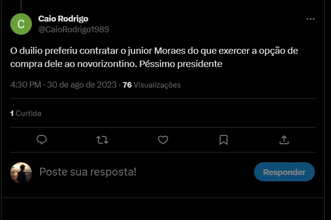 A repercussão nas redes sociais detona, em grande parte, a decisão do presidente Duílio Monteiro Alves de deixar Cauê escapar, não fechar negócio com o Novorizontino, deixá-lo ir para o Lommel e agora assinar por empréstimo com o Benfica B. Em Portugal, são três partidas disputadas e um gol feito até o momento.