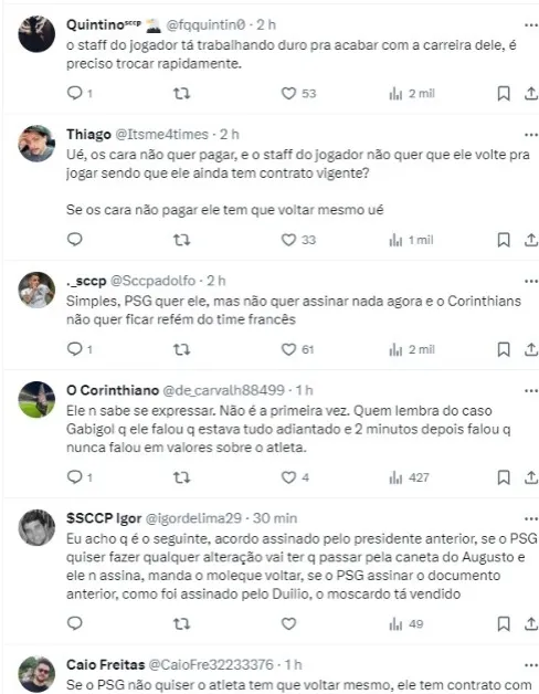 Augusto Melo revelou que pediu para o PSG devolver Moscardo ao Corinthians. O novo mandatário, inclusive, destacou que após a cirurgia há possibilidade de vender o volante por uma condição bem melhor.