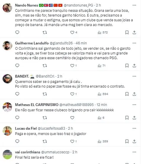 Porém, a bola da vez no Parque São Jorge é a definição do caso de Gabriel Moscardo, que teve uma reviravolta na negociação com o PSG. A negociação encontrou problemas após exames realizados no jogador, mas a equipe francesa fez um pedido para destravar o impasse.