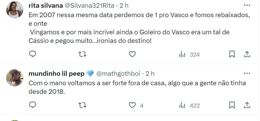 “O plano do Corinthians na viagem a São Januário era simples: não podia perder. Melhor do que não ser derrotado, o Corinthians conseguiu uma vitória duríssima. O Vasco teve mais finalizações, ainda que sem criatividade”, disse o jornalista.