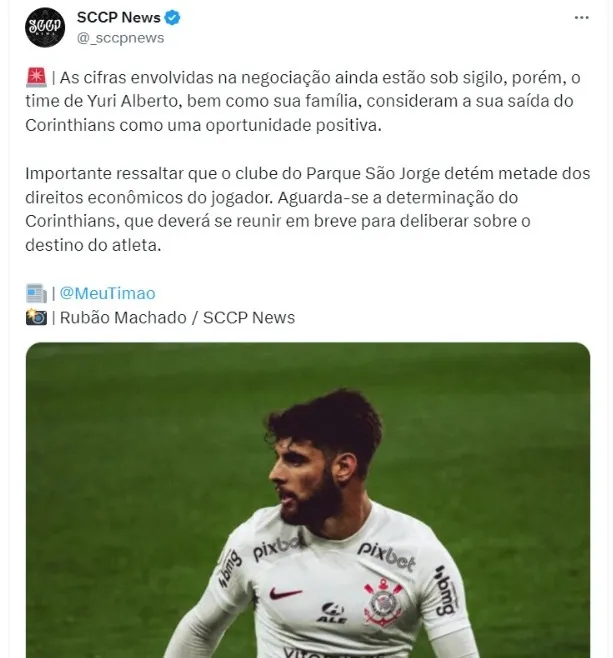 O time de Yuri Alberto, bem como sua família, consideram a sua saída do Corinthians como uma oportunidade positiva. Mesmo com esse cenário, o apresentador da TV Band, Neto, informou que o atacante não será vendido: “O Yuri Alberto não vai ser vendido. Não vai ser vendido”, disse.