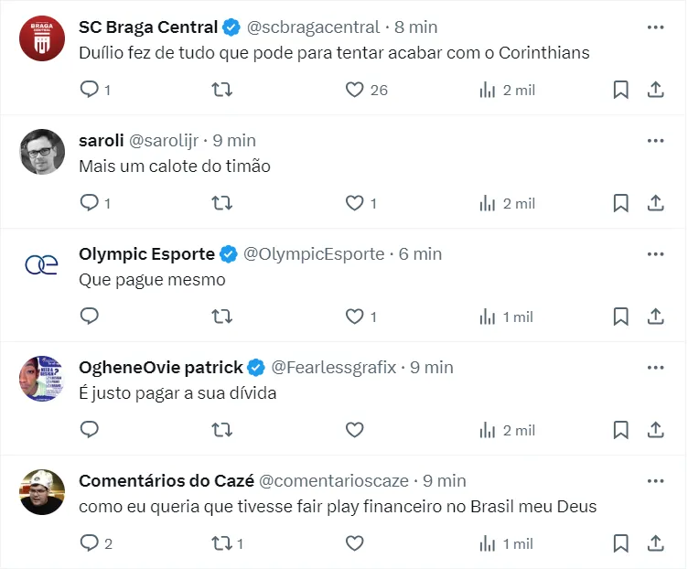 Vale destacar, inclusive, que Duílio Monteiros Alves, até então presidente do Corinthians, havia enviado uma nota oficial afirmando que as dívidas com o elenco seriam quitadas na última sexta-feira (29/12), o que não ocorreu.
