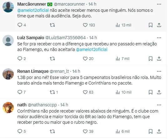Enquanto isso, o Corinthians está envolvido em um acordo que poderá render R$ 1,3 bilhão por ano aos clubes da Libra (Liga do Futebol Brasileiro), e Augusto Melo pode ser fator decisivo para o bem ou para o mal.