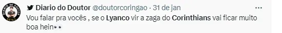 Uma informação nos bastidores a respeito do que Lyanco imagina para sua carreira neste momento pode deixar a Fiel Torcida mais animada a respeito de uma eventual contratação. Ele viria com status de titular absoluto.