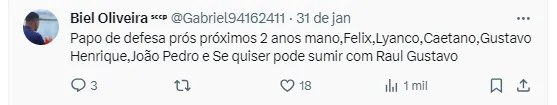 Porém, caso as negociações sejam abertas, não será fácil. Isso porque ele está avaliado em 4 milhões de euros (R$ 21,5 milhões, de acordo com a cotação atual). Sendo assim, Augusto Melo vai precisar abrir o bolso se quiser que Mano Menezes tenha Lyanco em seu elenco.