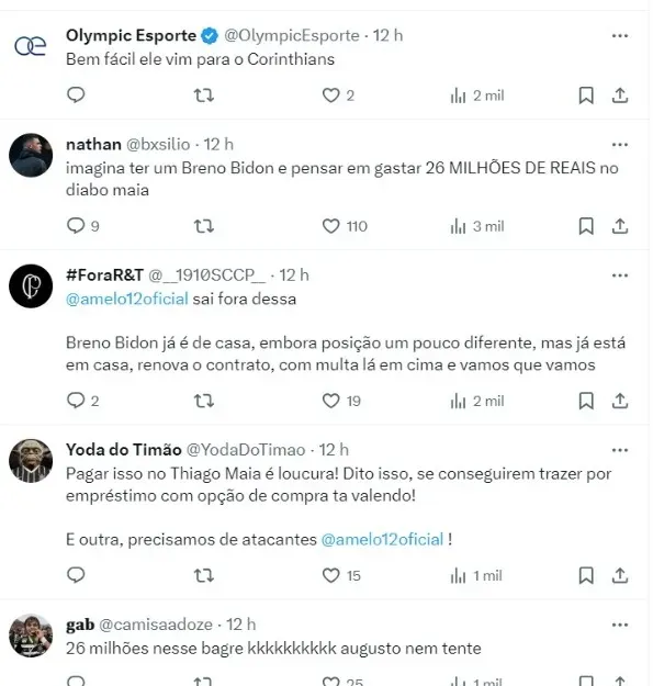O clube prometeu ao staff do volante que fará uma última investida, assim como também deve acontecer sobre Thiago Maia. O Timão ainda não fez proposta oficial para os dois atletas.
