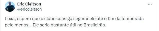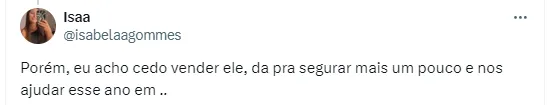 Vale ressaltar que a direção do Time do Povo estipula o valor de 50 milhões de euros (R$ 269 milhões, na cotação atual) para negociá-lo. No entanto, não é da vontade de Augusto Melo e companhia vendê-lo agora.